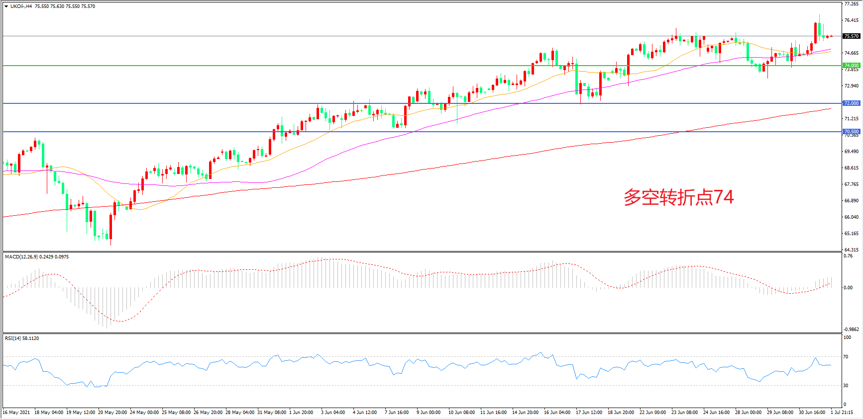 交易策略:在74.00之上看涨,目标77.00    80.00
