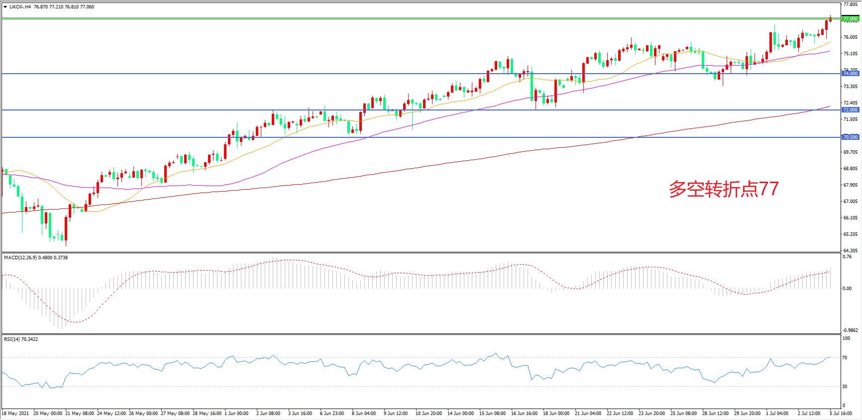 交易策略:在77.00之上看涨,目标77.00    83.00