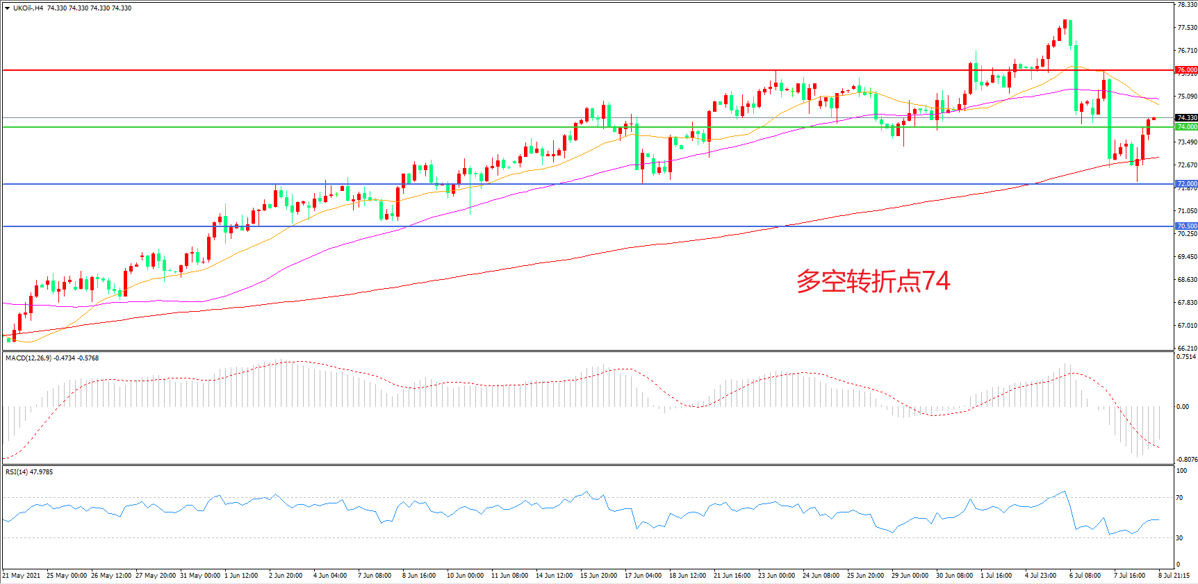 交易策略:在74.00之上看涨,目标76.00    78.50