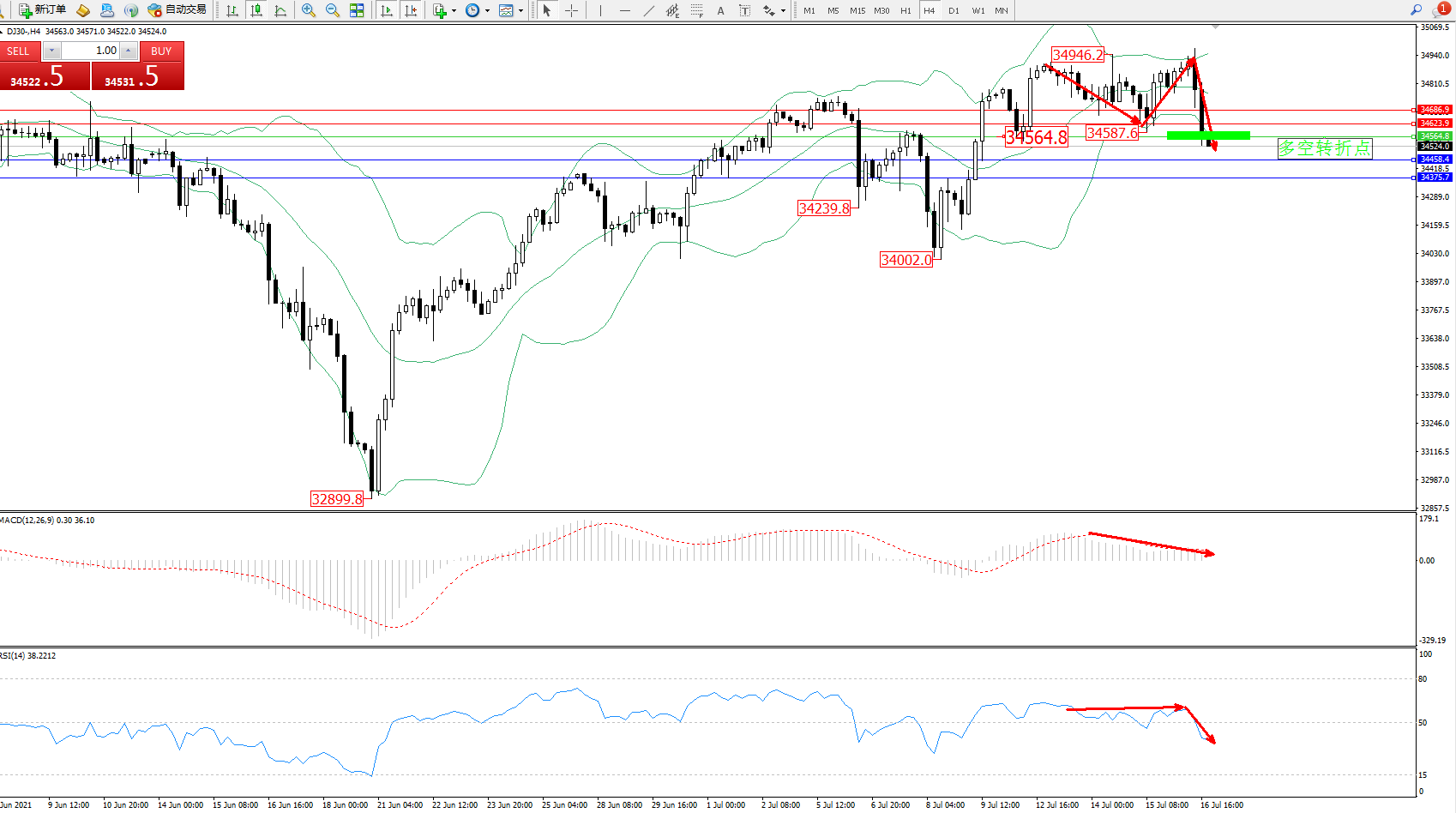 道琼斯指数7月16日(周五)收盘下跌299.17点,跌幅0.86%,报34687.85点;由于通胀加速引发对经济扩张可持续性的担忧,美国股市一个月来首次较前周下跌;投资者们在思考接下来会发生什么,企业的业绩数字强劲,但是未来仍然存在不确定性。通胀高于预期,投资者正在密切关注有关货币政策前景的线索。到目前为止,大多数货币政策官员将价格压力视为暂时性的,认为还不足以改变刺激方案。