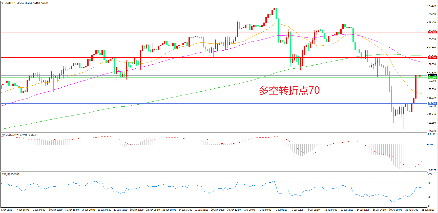 多空转折点:70.00