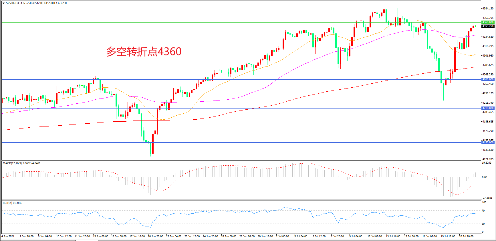 周三(7月21日),得益于可口可乐等部分各自行业内的大企业公布财报业绩优于市场预期以及原油高涨的能源板块带领下,标普500大幅拉升,收报4353点。大型科技股中,Facebook和谷歌母公司Alphabet涨逾1%,奈飞跌超3%,继续表现垫底。迄今为止的企业财报几乎一致反映了经济强劲反弹,在投资者逢低买入的推动下,美股有望再创新高。