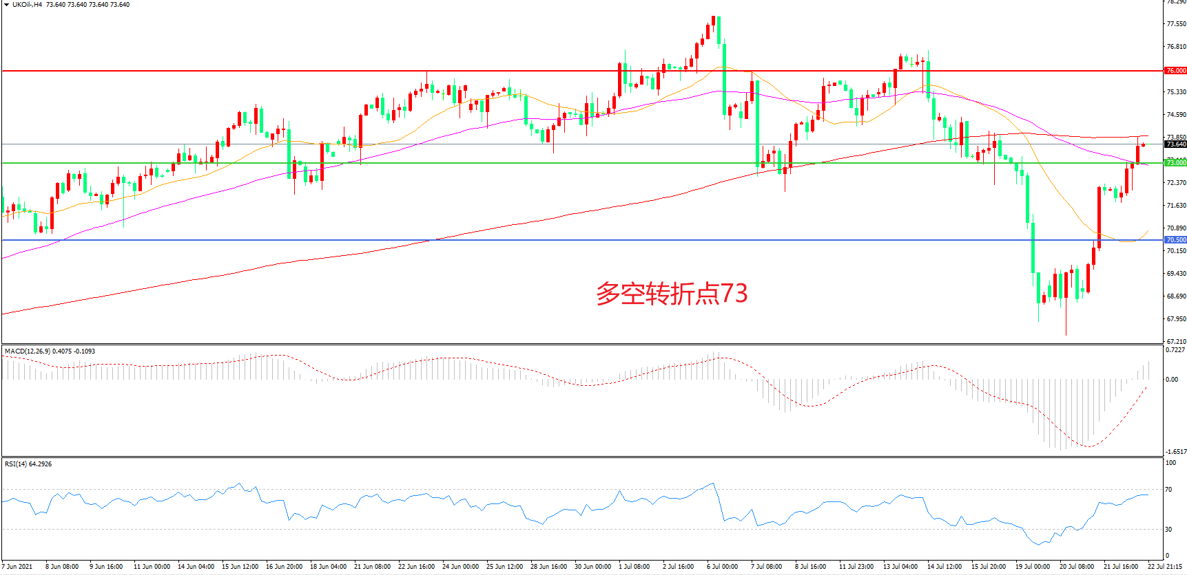 交易策略:在73.00之上看涨,目标76.00 79.00