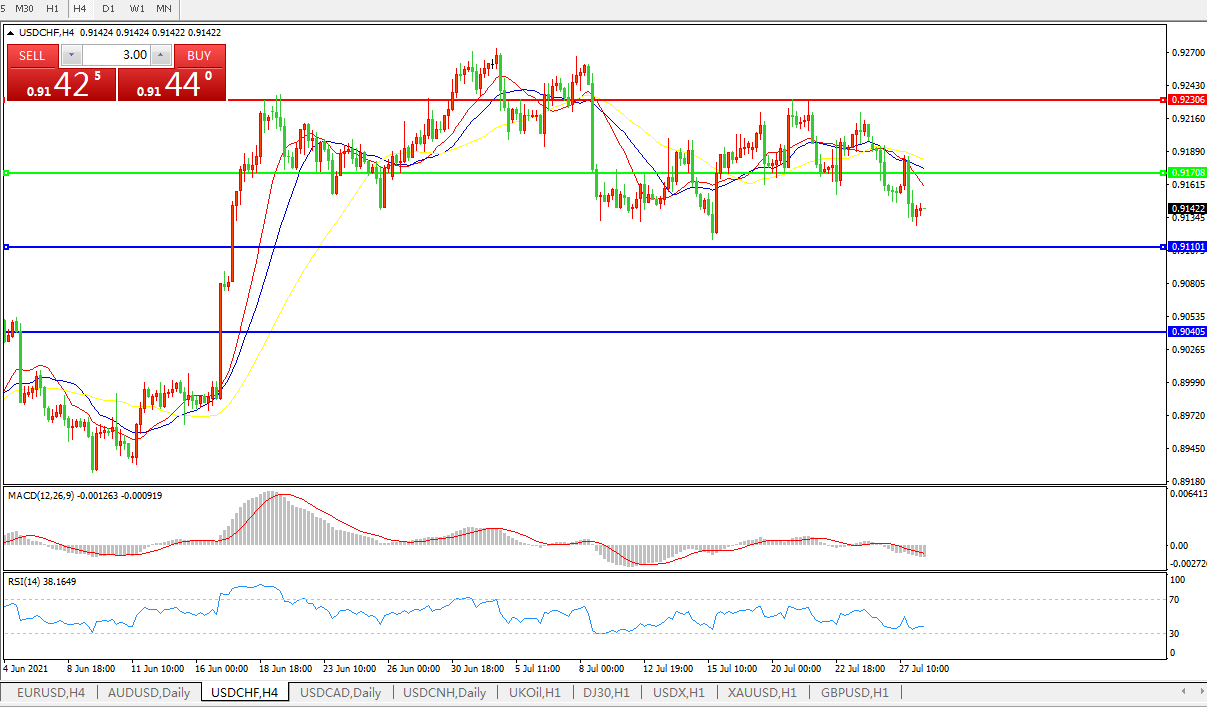 交易策略:0.9170下方看跌,目标0.9110、0.9040