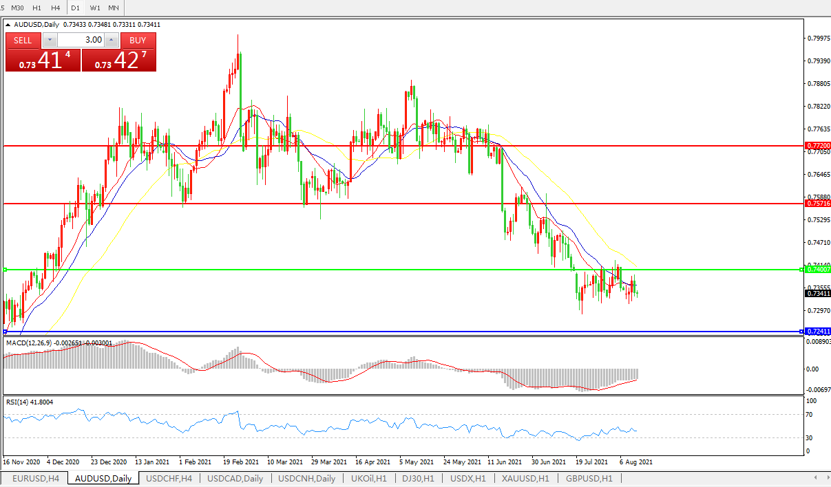 交易策略:0.7400下方看跌,目标0.7240、0.7080