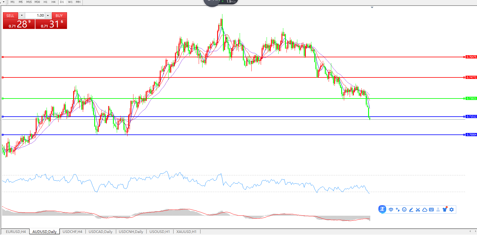 备选策略:0.7400上方看涨,目标0.7570、0.7720