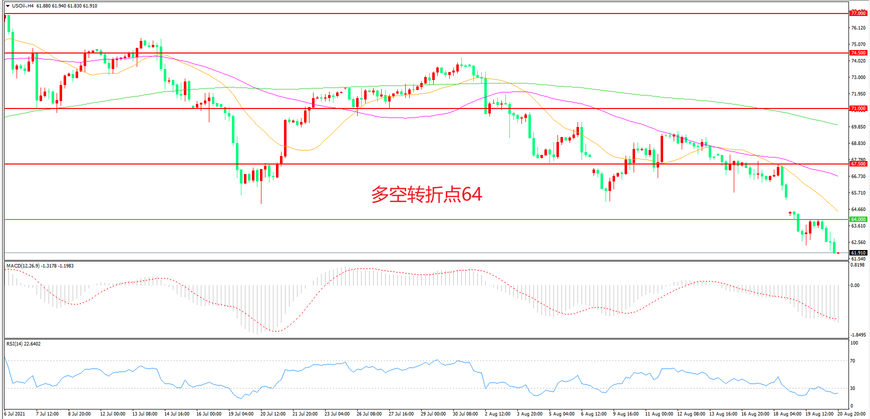 交易策略:在64.00之下看跌,目标60.00 57.00