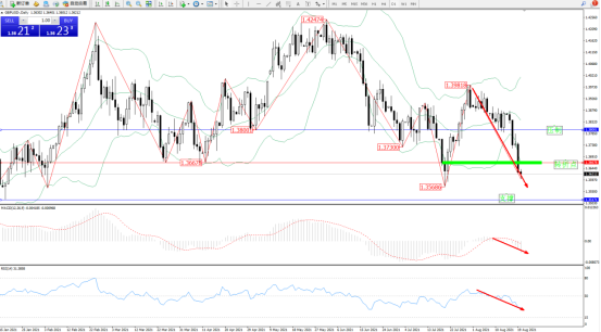 高位空头动力持续震荡下挫,延续布林带指标下轨附近不断下行,前期低位1.35686位置近在咫尺破位在即,短期空头下行持续中,布林带指标呈张口走势持续中,上方压制关注1.38001附近,低位支撑关注1.35171附近,关注1.36678位置转折点,MACD 指标处于0轴线附近弱势整理后持续震荡下行,RSI指标处于50均衡线附近窄幅徘徊后开始不断向下移动中,如图: