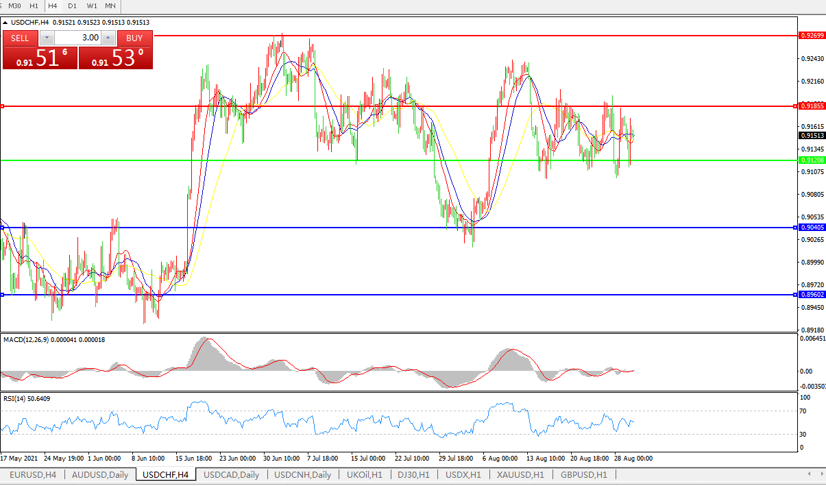 交易策略:0.9120上方看涨,目标0.9185、0.9270