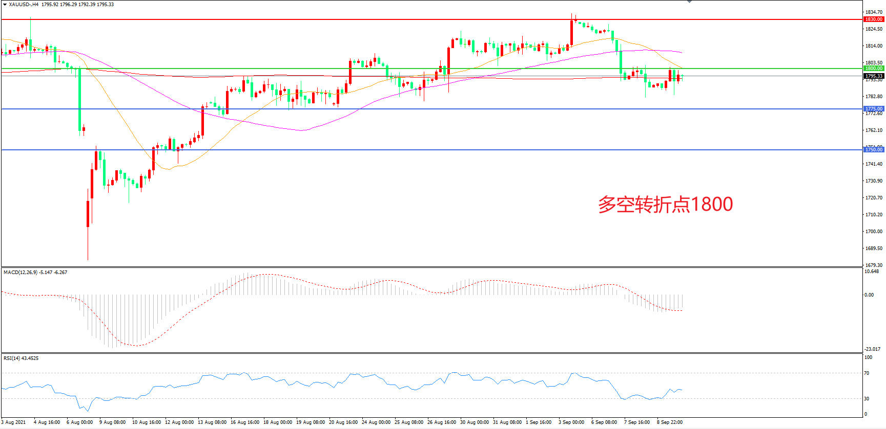 交易策略: 在1800.00之下看跌,目标1775.00            1750.00
