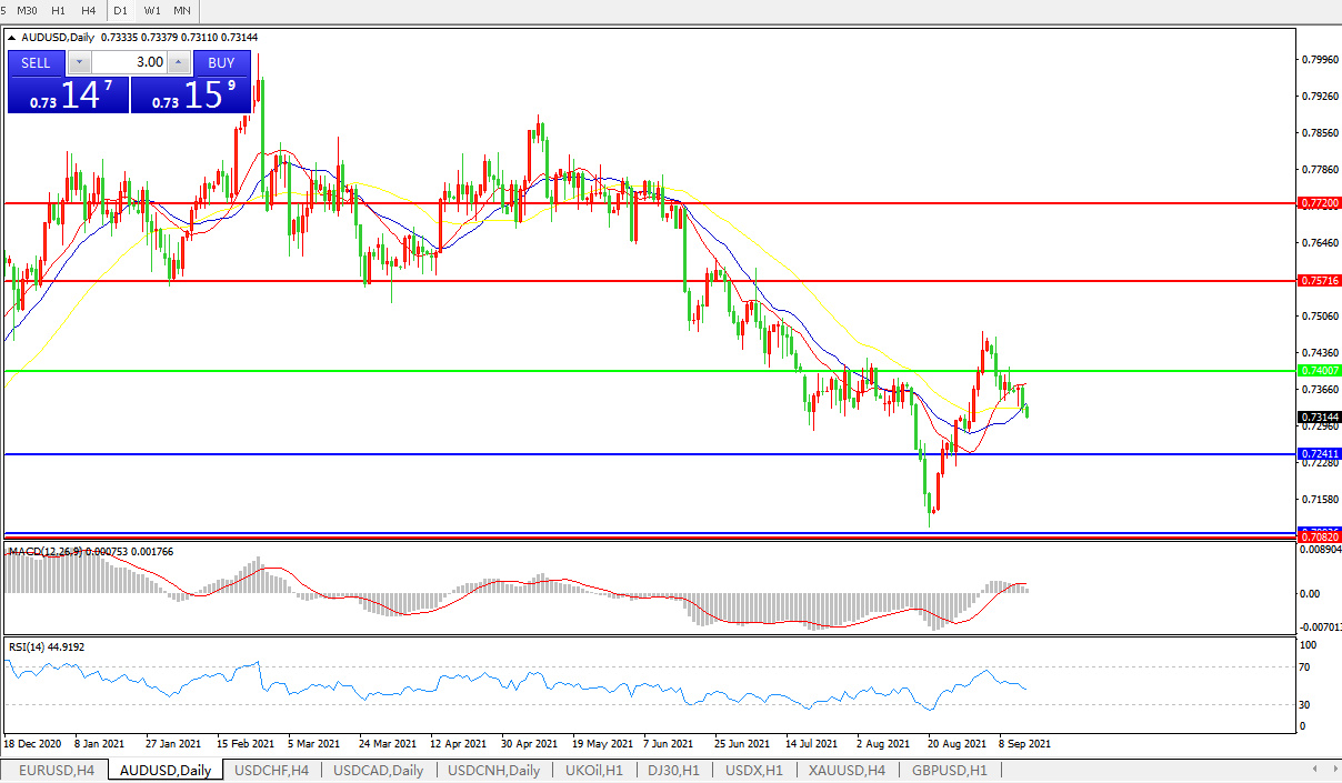 交易策略:0.7400下方看跌,目标0.7240、0.7080