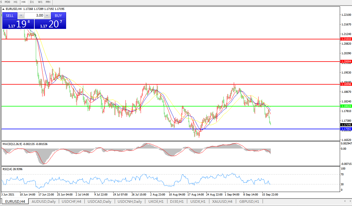 交易策略:1.1800下方看跌,目标1.1700、1.1600