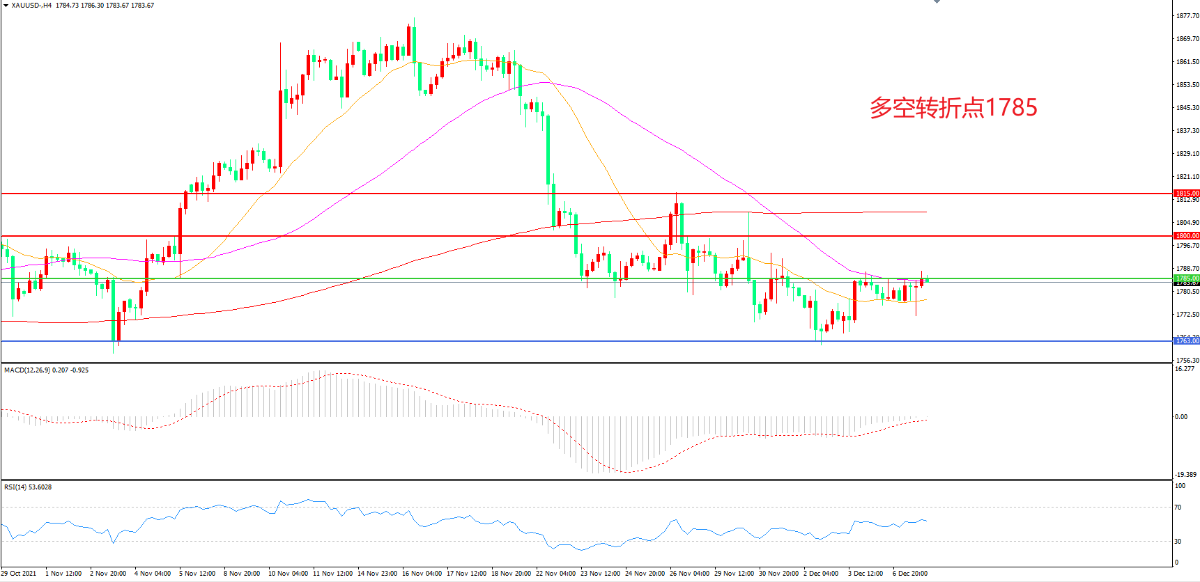 备选策略:在1785.00之上看涨,目标1800.00 1815.00