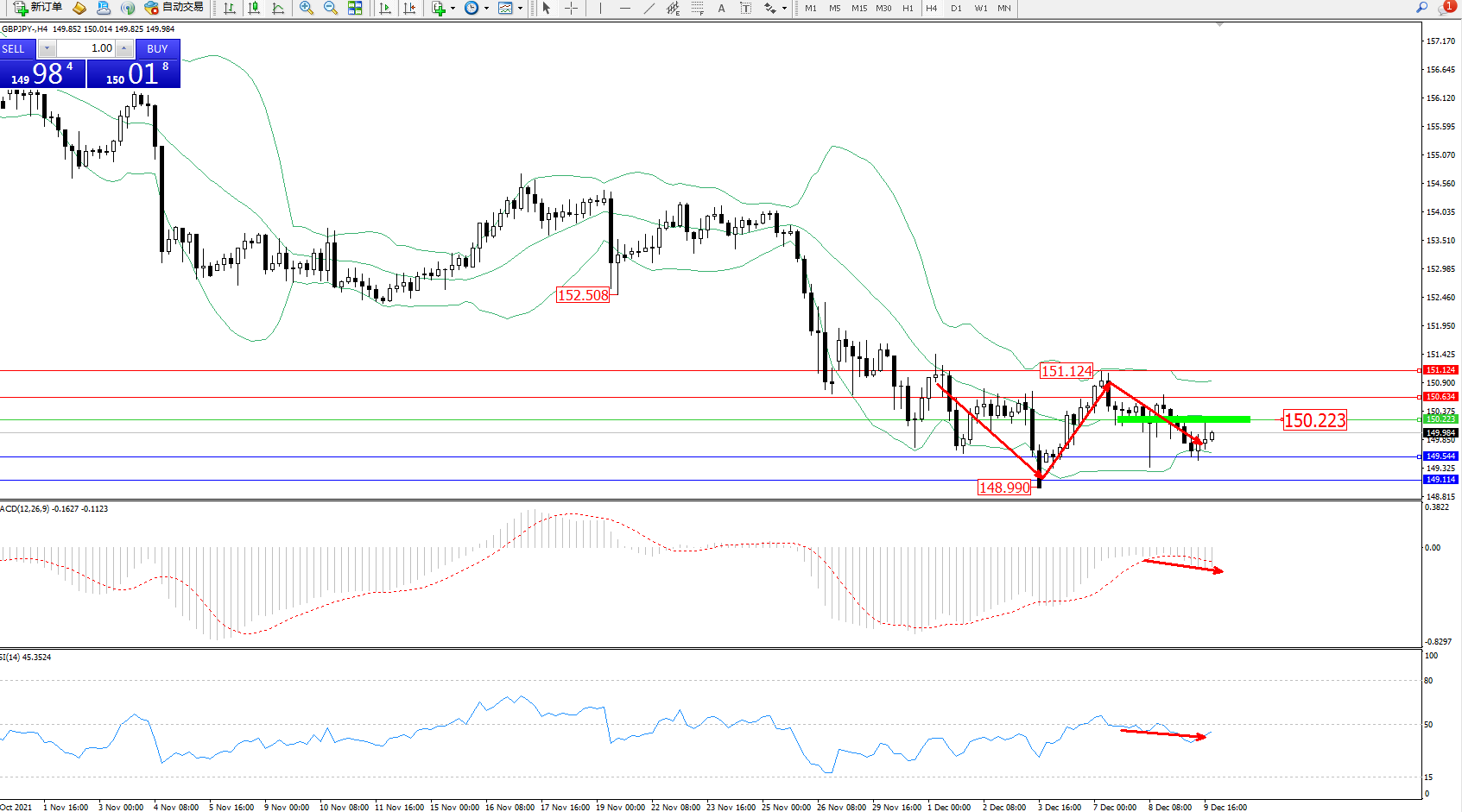 支撑位:149.544、149.114