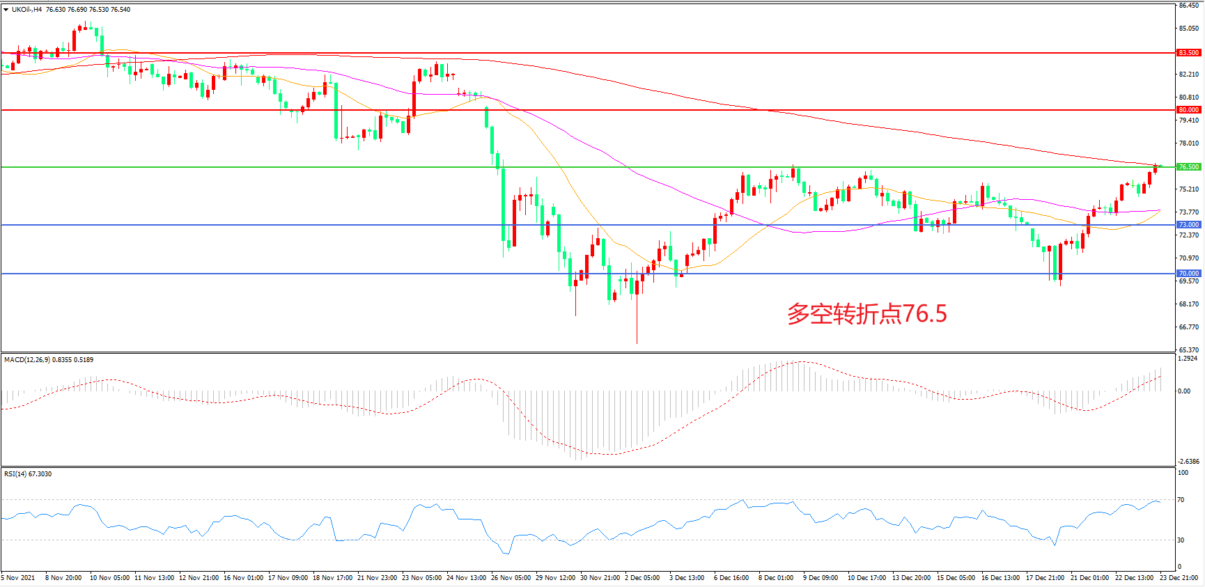 交易策略:在76.50之上看涨,目标80. 00 83.00