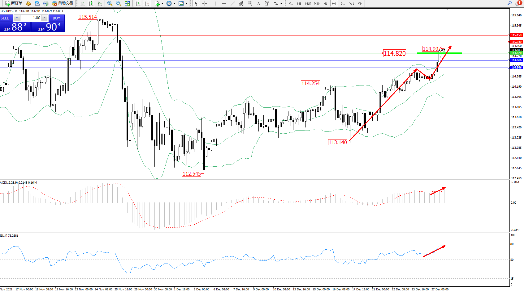 交易策略:114.820上方看涨,目标115.030、115.158