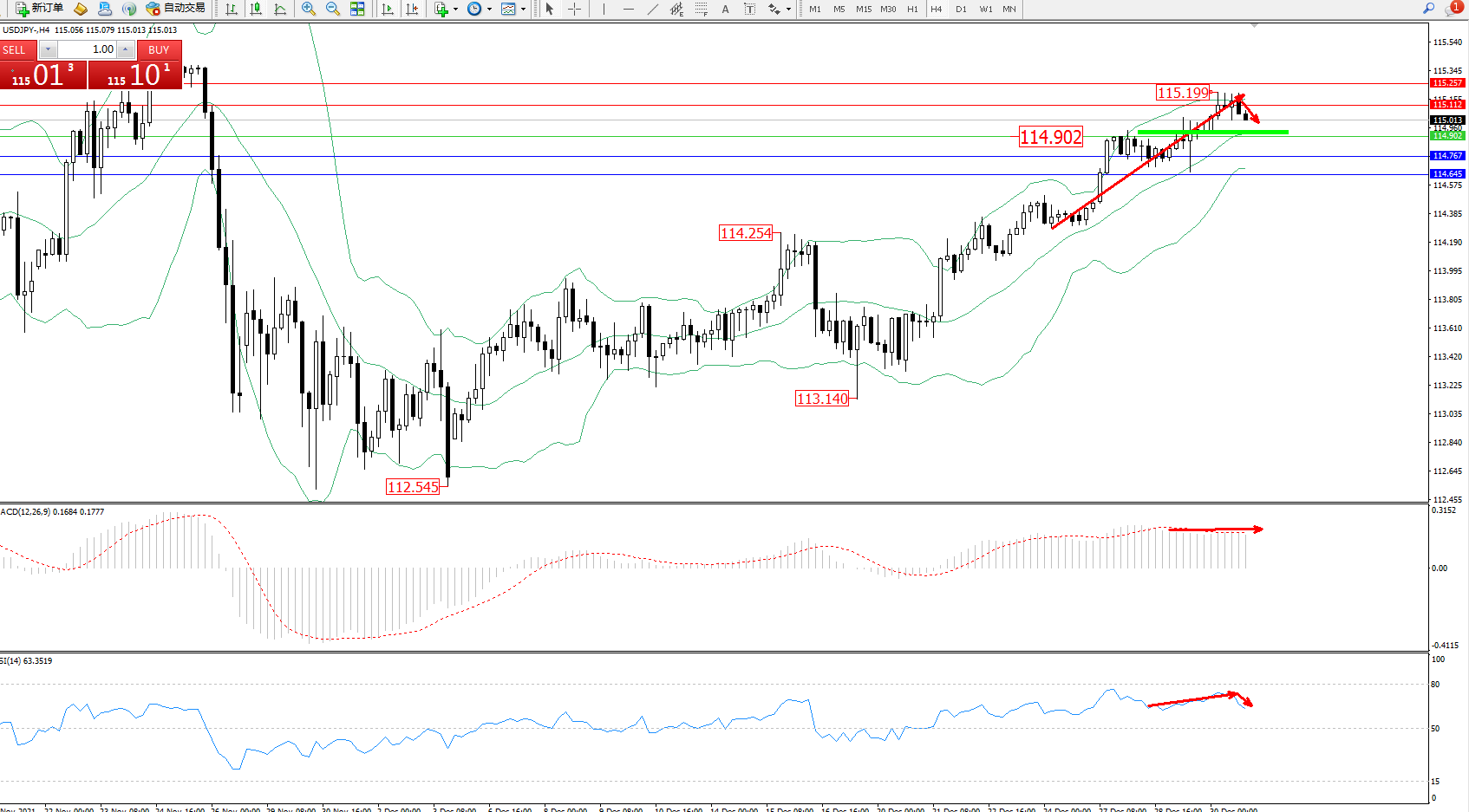 交易策略:114.902上方看涨,目标115.112、115.257