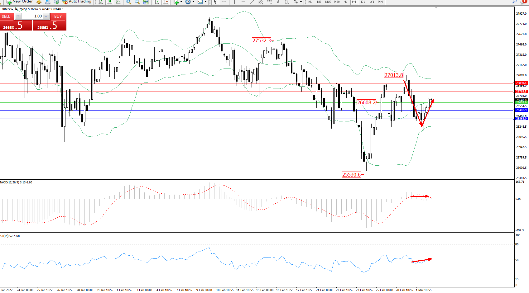 日经指数JPN225——4小时K线图显示: