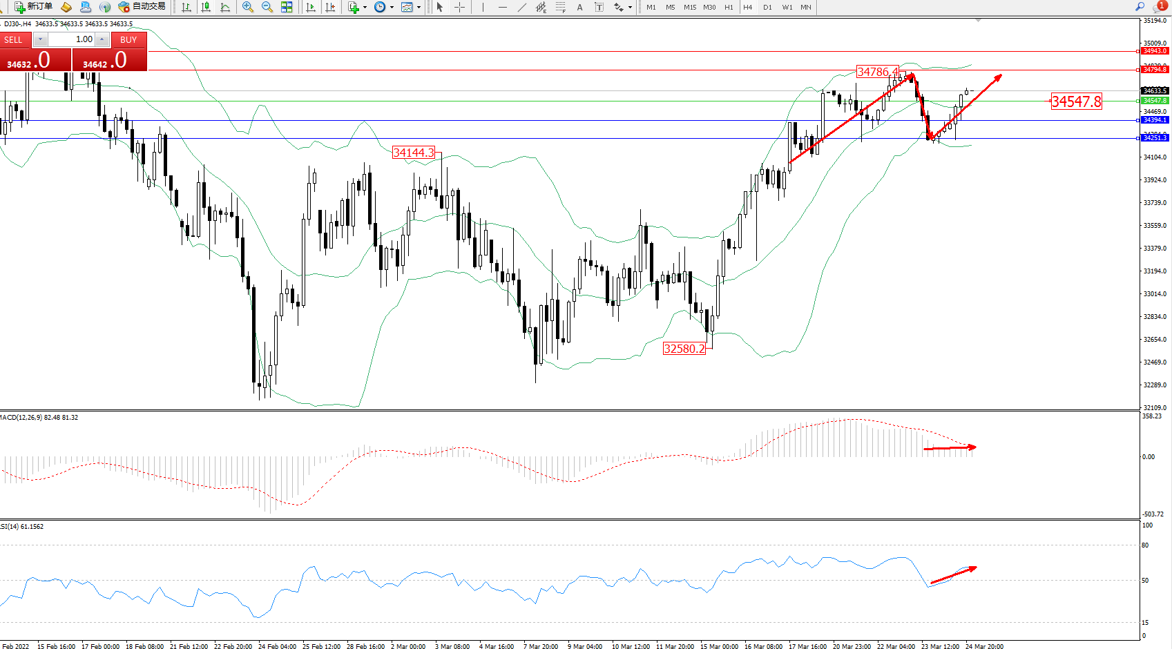 技术点评:多头动力延续布林带指标通道中上轨区间持续震荡上扬高位抵达34786位置节点后开始震荡,短期纠结于布林带指标通道内维持窄幅整理中, 多头动力有继续维持震荡上移迹象,布林带指标呈缓慢整理张口中,MACD指标处于多头区域维持弱势徘徊下行至0轴线上方徘徊,RSI指标处于50均衡线上方整理中;