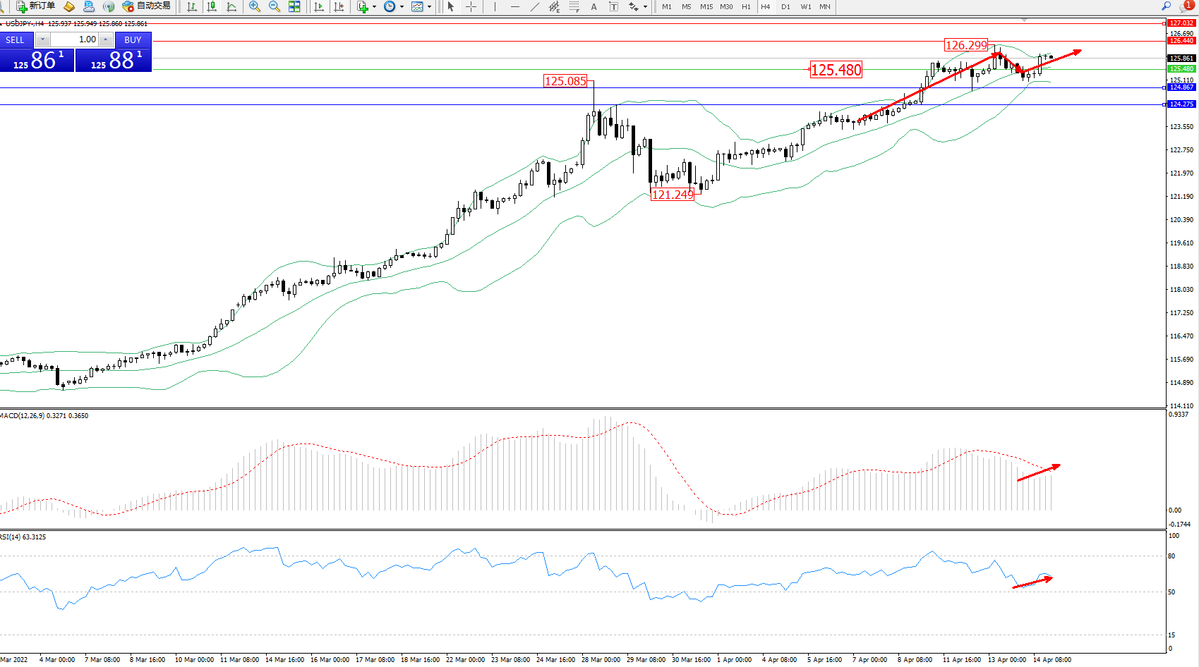 交易策略:125.480上方看涨,目标126.440、127.032