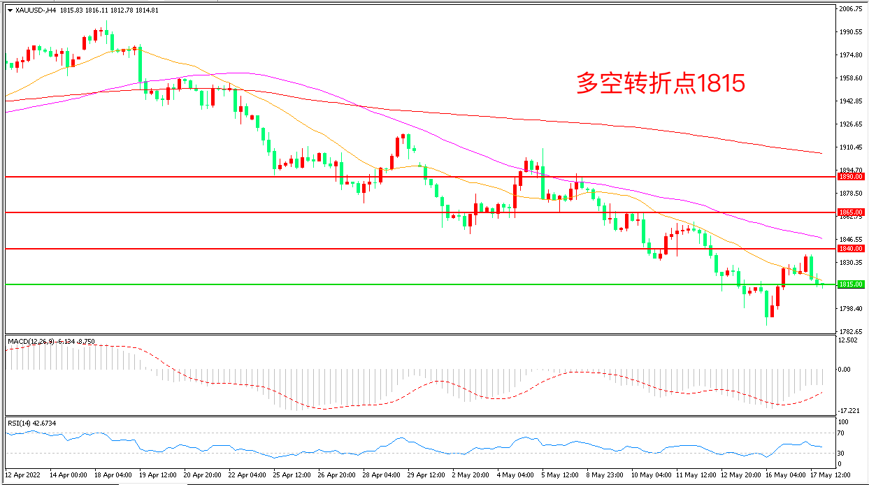 交易策略:在1815.00之下看跌,目标1790.00      1765.00