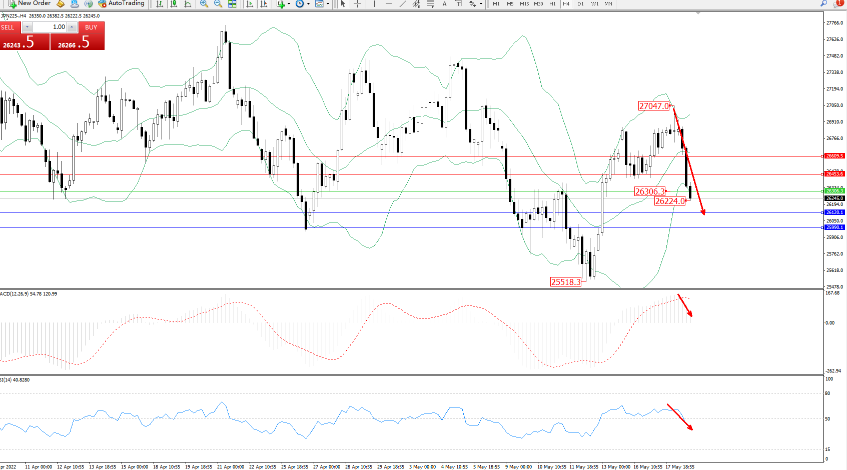 日经225指数5月18日(周三)收盘上涨234.75点,涨幅0.88%,报26894.50点。日本第一季度GDP折合年率-1.0%,降幅低于预期的-1.8%,日本政府官员称,一季度GDP收缩主要是由进口增加导致;美国和日本将就稀土供应建立合作关系。