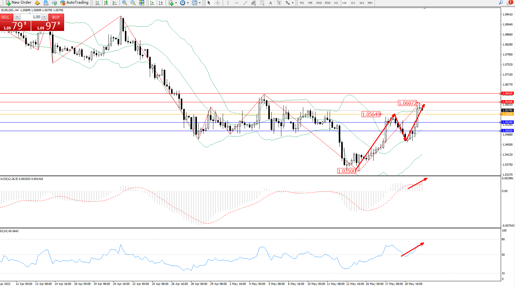 交易策略:1.05649上方看涨,目标1.06106、1.06426