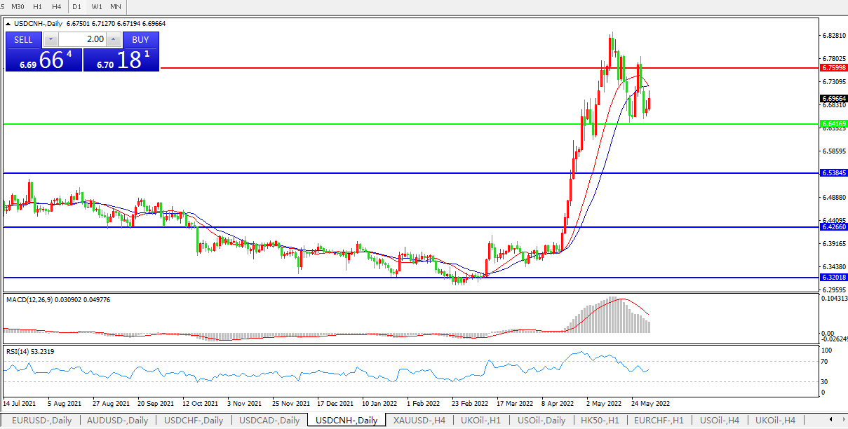 交易策略:在6.6416之上,看涨,目标价位为6.7600,然后为6.8870。