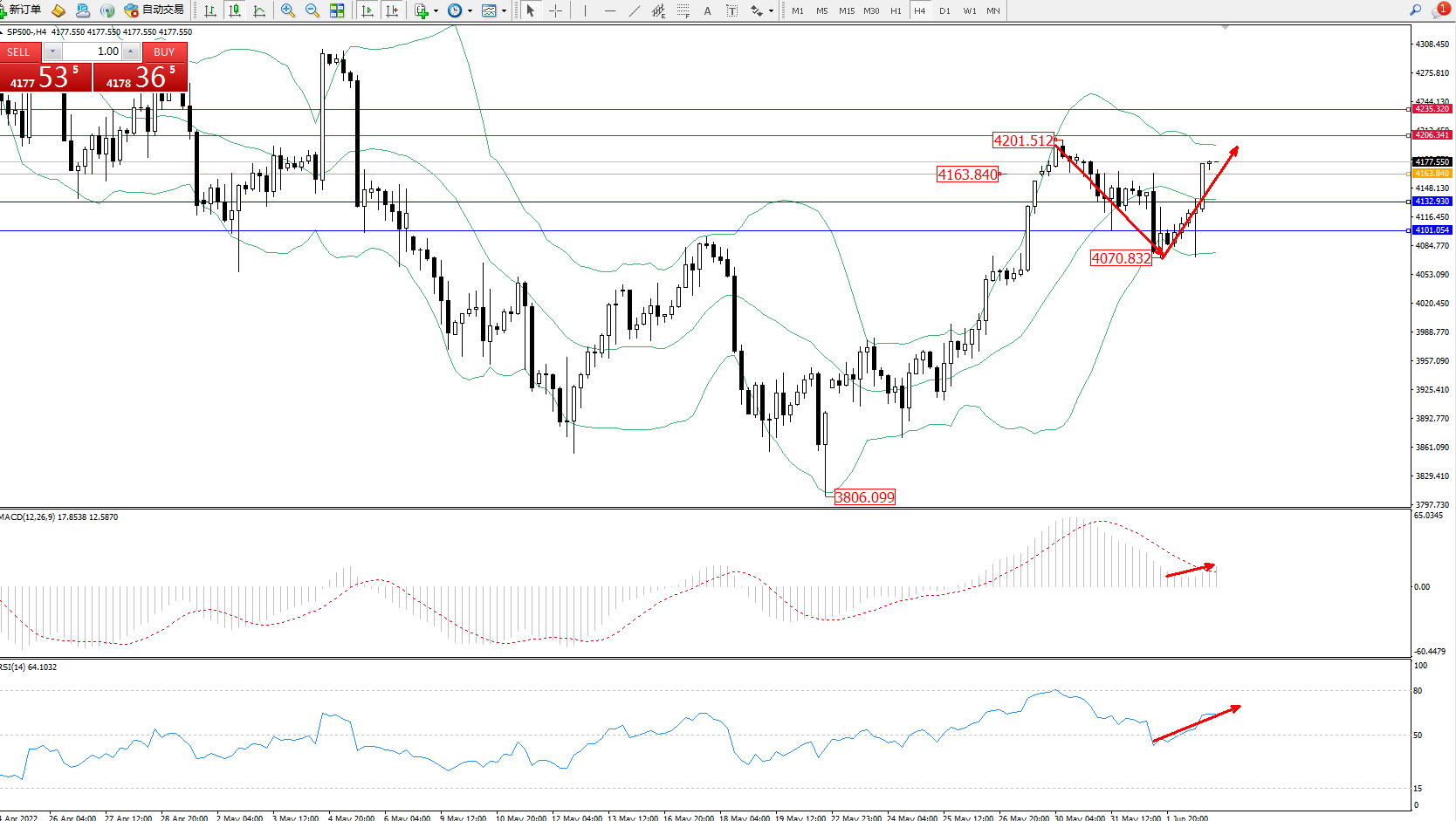 标普500指数6月2日(周四)收盘上涨75.87点,涨幅1.85%,报4177.10点;美国初请失业金人数意外下降,因就业需求依然强劲,在利率上升和金融环境收紧的情况下,这将有助于支撑经济。