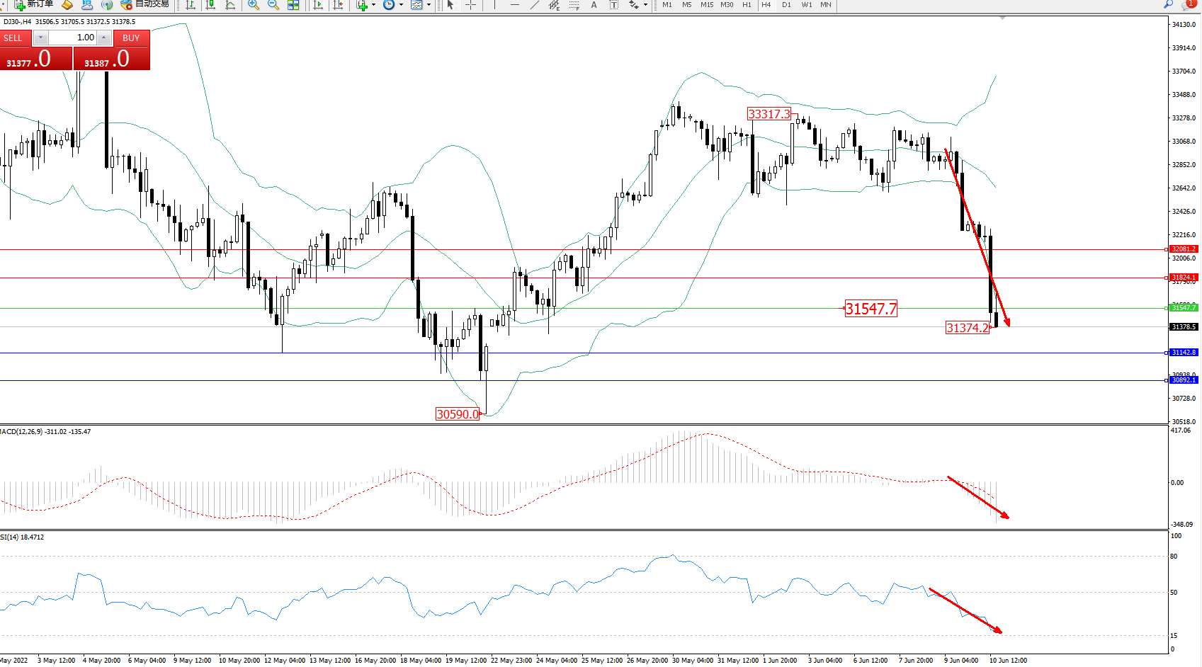 道琼斯指数6月10日(周五)收盘下跌879.80点,跌幅2.73%,报31392.66点;美国股市周五连续第三天下跌,并创1月份以来最大周跌幅,因5月份通货膨胀意外加速至40年高点,迫使交易员提高对美联储将更加激进加息的押注。