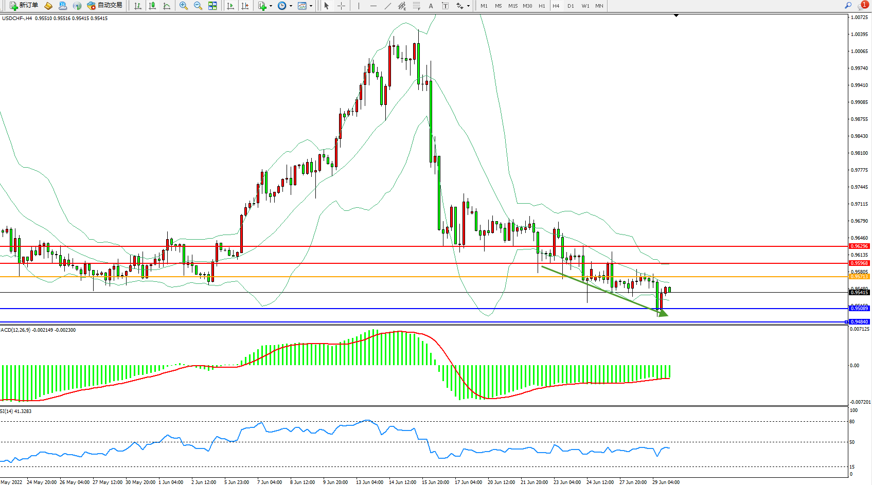 交易策略:0.95713下方看跌,目标0.95089、0.94840