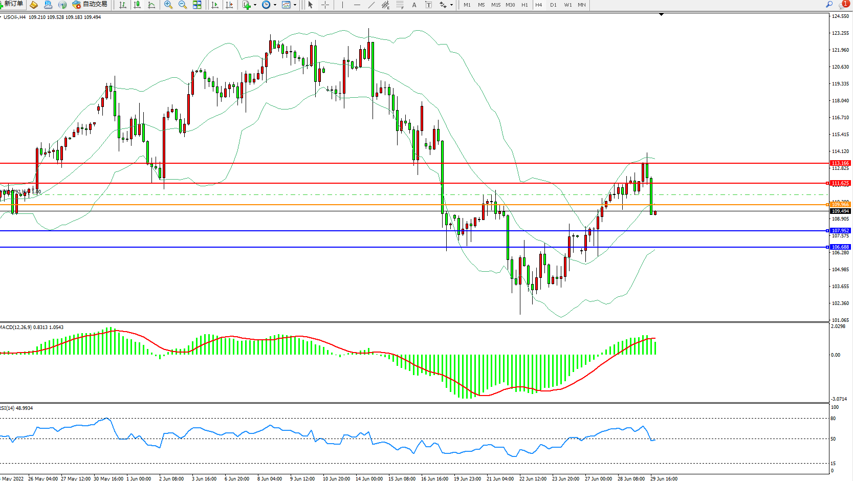 原油维持109.484附近震荡,美国至6月24日当周除却战略储备的商业原油进口量为2022年4月22日当周以来最低。6月24日当周EIA战略石油储备库存为1986年4月18日当周以来最低。