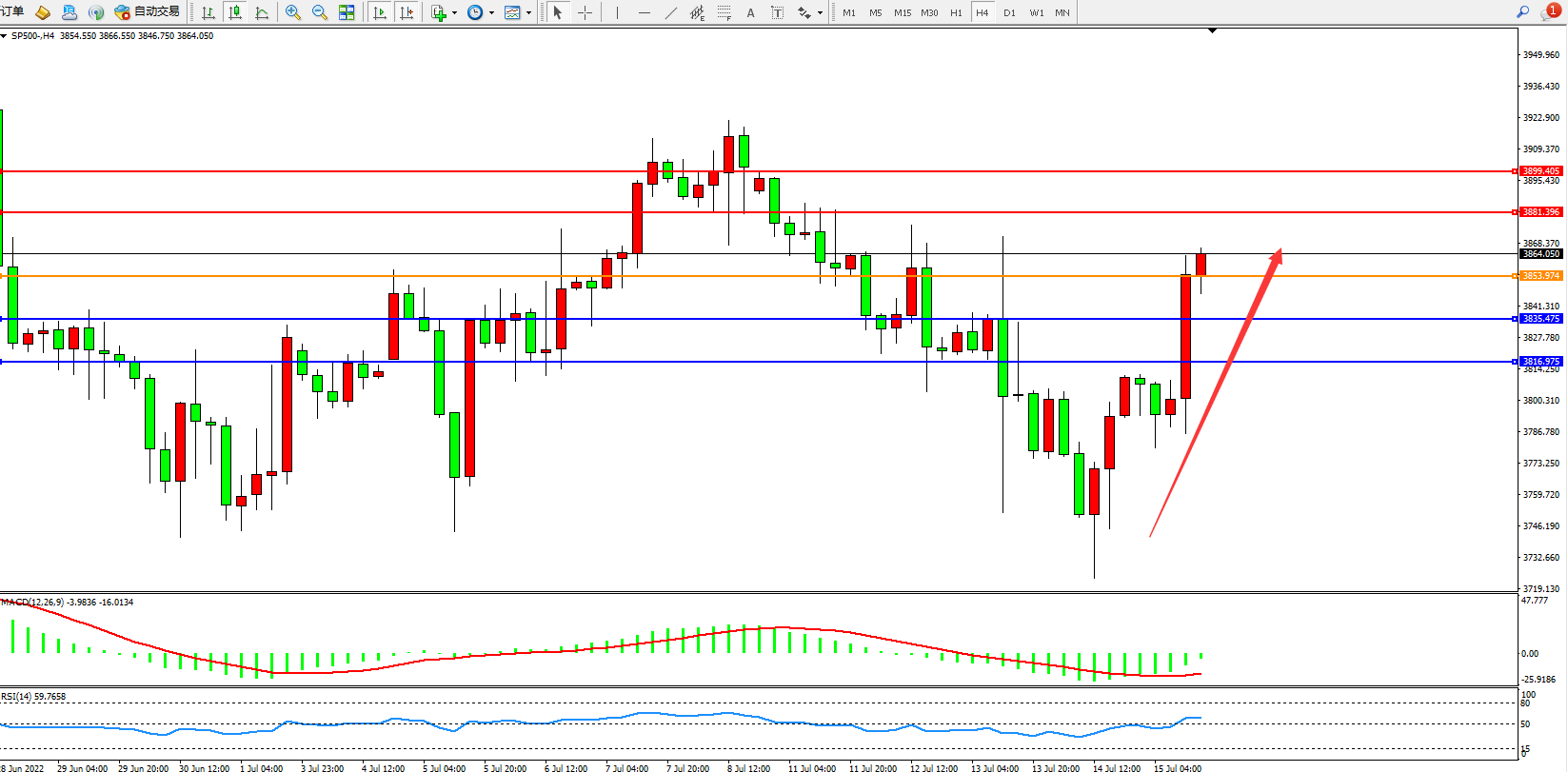 标普500指数7月15日(周五)收盘上涨70.26点,涨幅1.85%,报3860.64点;联邦基金利率期货市场周五被一笔大单震撼,这笔交易的方向是对赌日益主流的美联储本月加息1个百分点的预测。