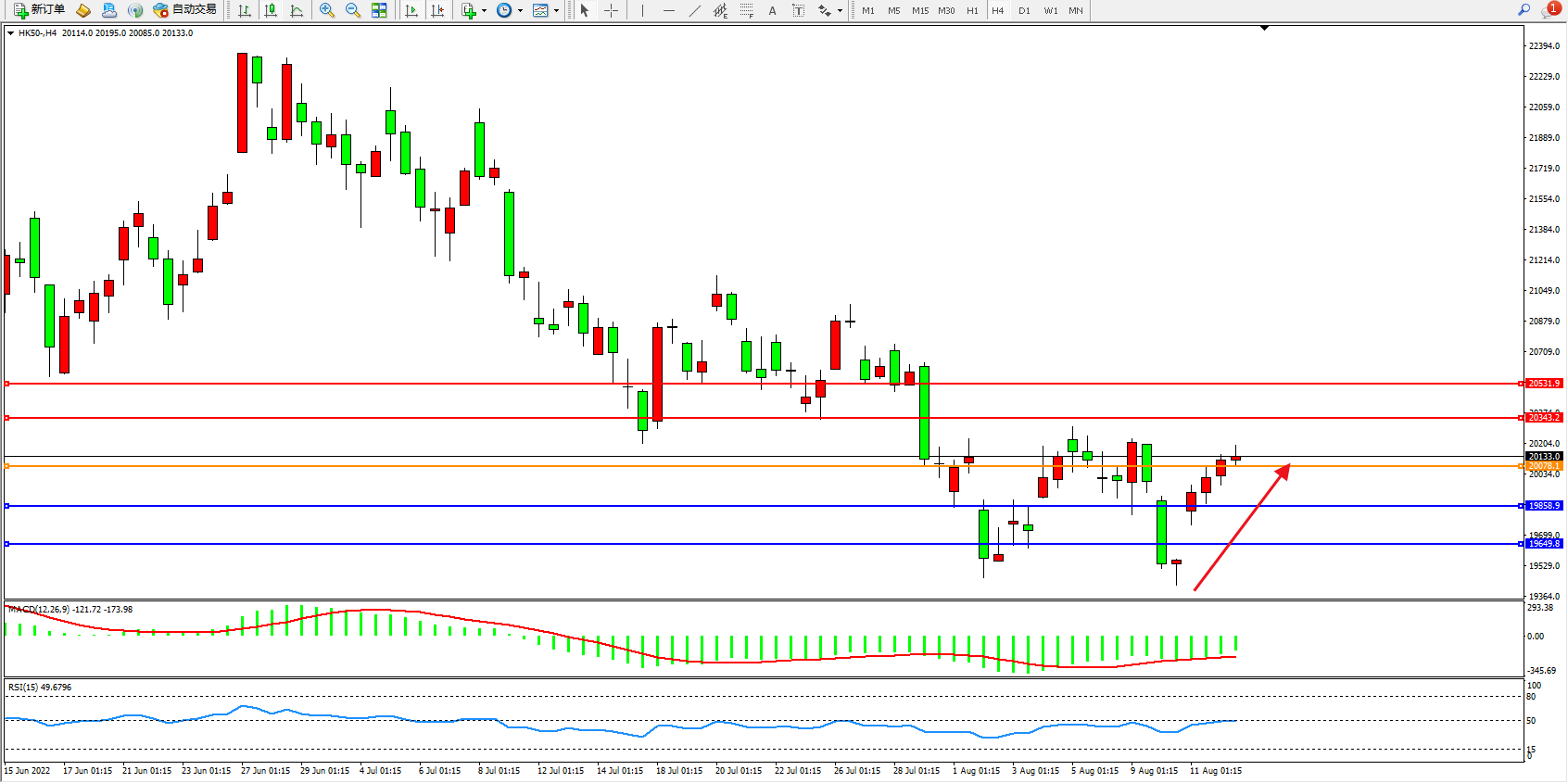 香港恒生指数8月12日(周五)收盘上涨93.19点,涨幅0.46%,报20175.62点;港股三大指数全天震荡收涨,延续昨日反弹行情。恒生科技指数涨0.54%。盘面上,大型科技普遍上涨,半导体股、芯片股跌幅靠前,在线教育股全线走低,药品股、军工股表现萎靡。随着预期下半年用药需求提升与创新药加速上市,医疗板块逐渐企稳并显抬升势头。