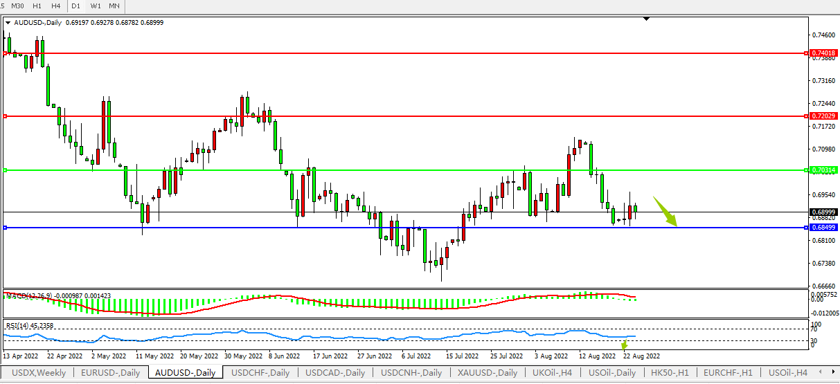 交易策略:0.7030下方看跌,目标0.6850、0.6700