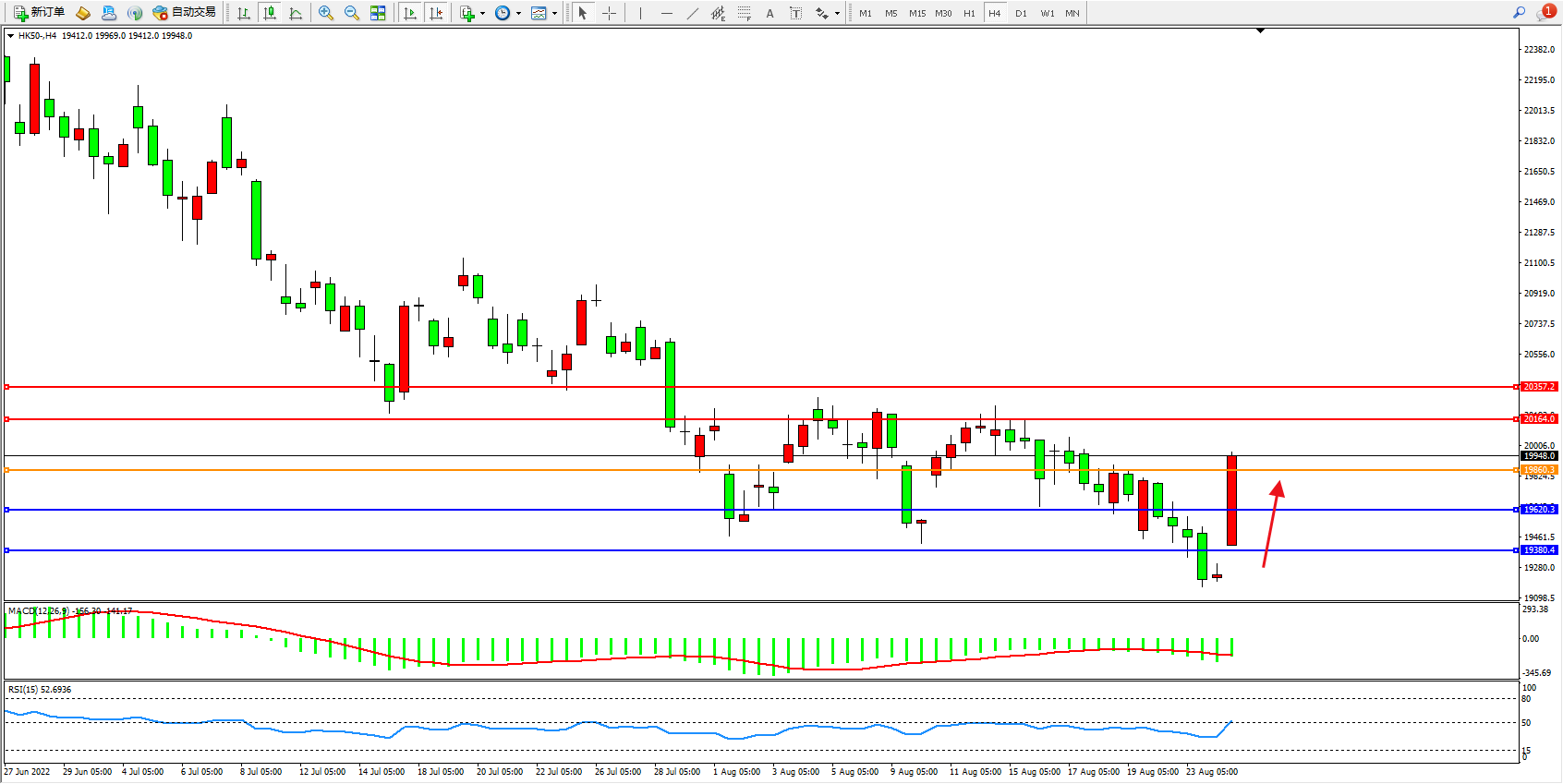 香港恒生指数8月25日(周四)收盘上涨699.64点,涨幅3.63%,报19968.38点;港股因台风影响上午盘休市,午后开盘大涨,市场做多情绪大增。以科技股为首的权重股领衔大市走高。恒指涨3.63%上扬700点,恒生科技指数涨6.01%重回4200点上方,二者均收复本周跌幅。国常会再提平台经济发展,俄罗斯海运煤炭出口因欧盟禁令而中断,煤炭股走强明显。