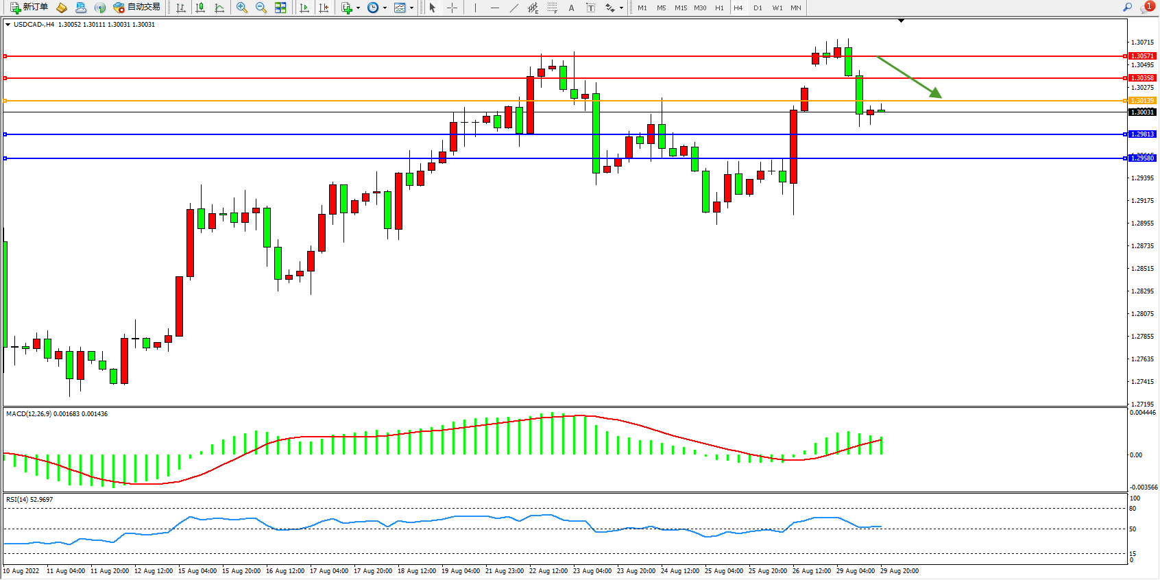 交易策略:1.30139下方看跌,目标1.29813、1.29580
