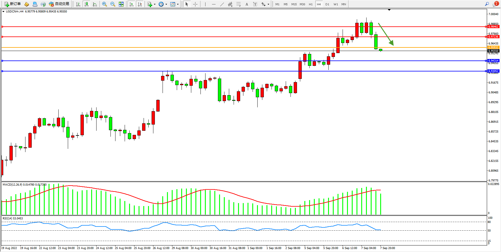 备选策略:6.95932上方看涨,目标6.97236、6.98462