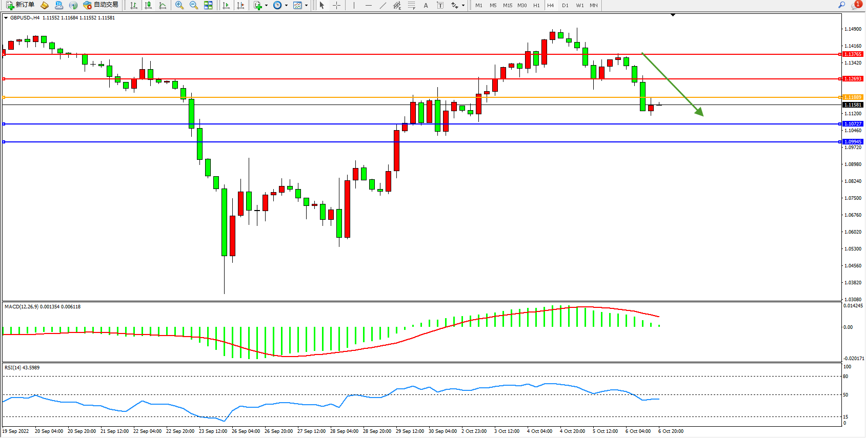 英镑美元GBPUSD ——4小时K线图显示: