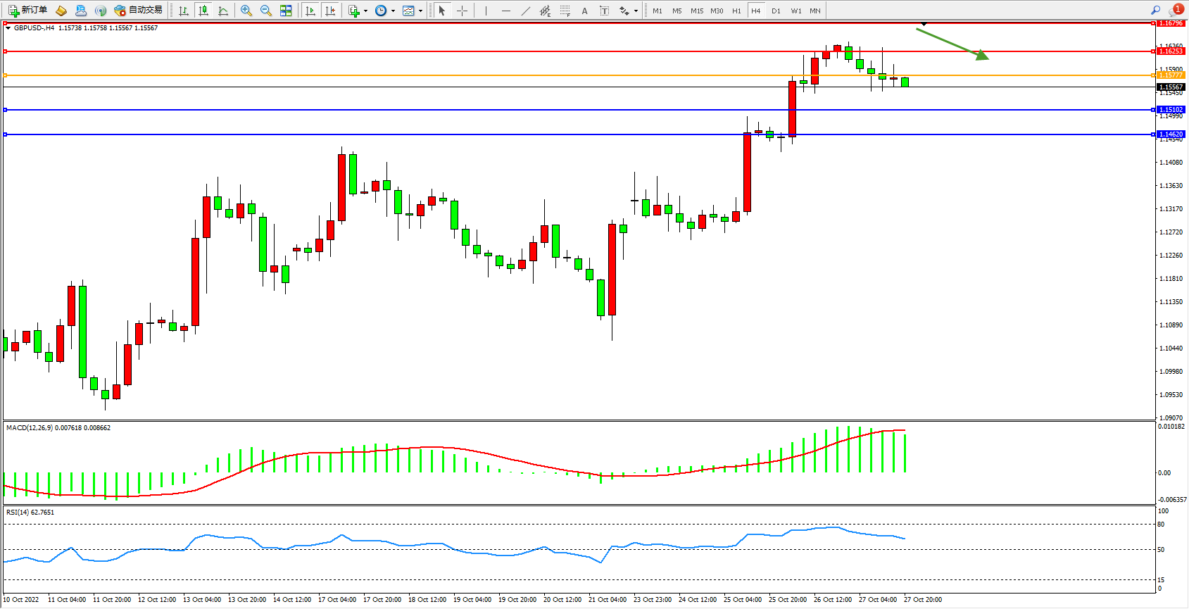 英镑美元GBPUSD ——4小时K线图显示: