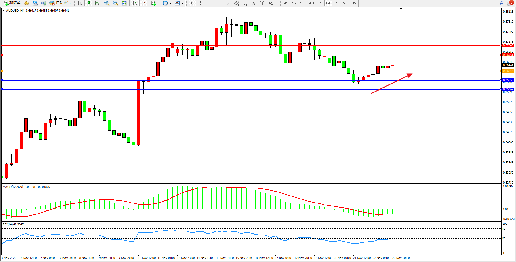 交易策略:0.66243上方看涨,目标0.66751、0.67049