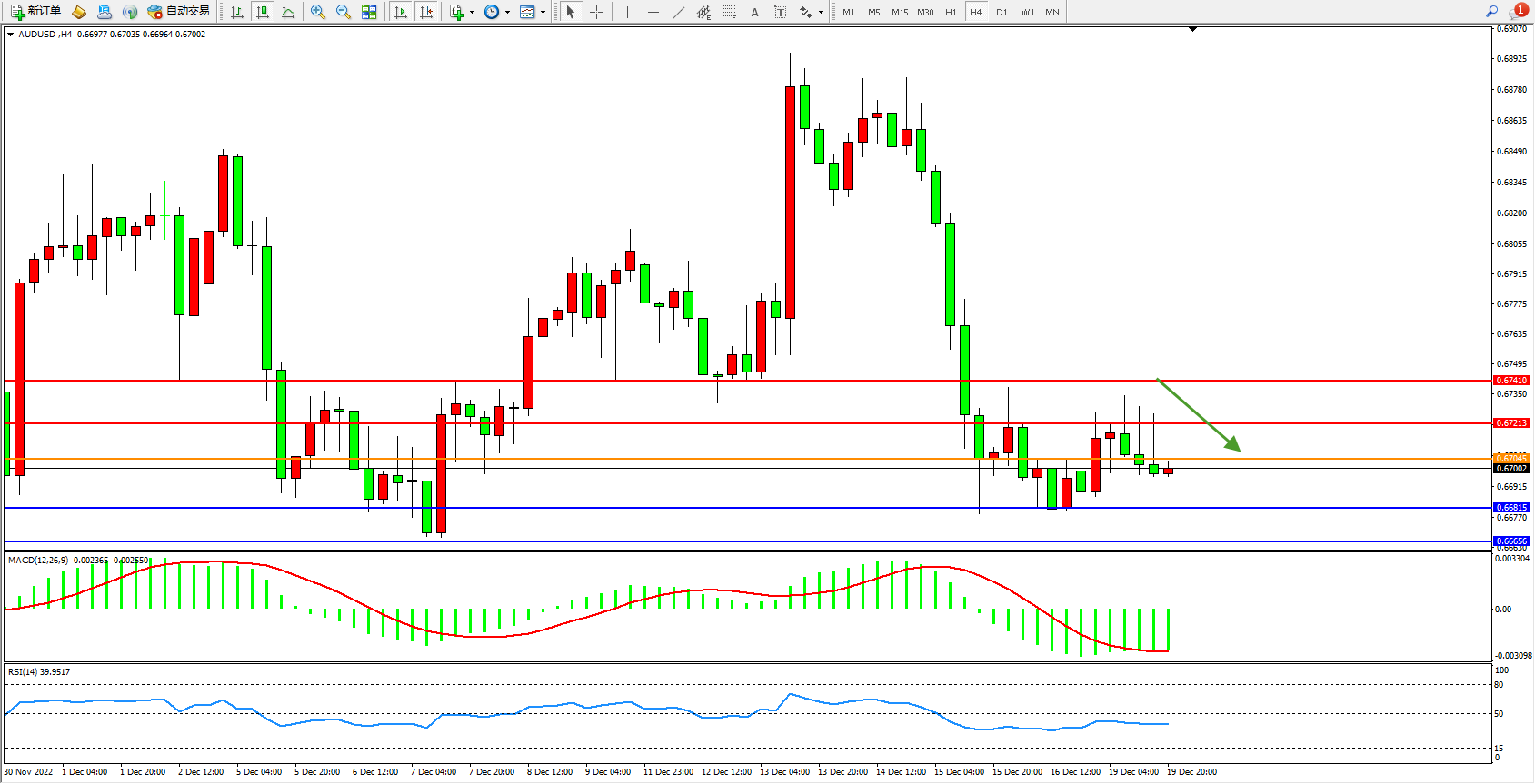 交易策略:0.67045下方看跌,目标0.66815、0.66656