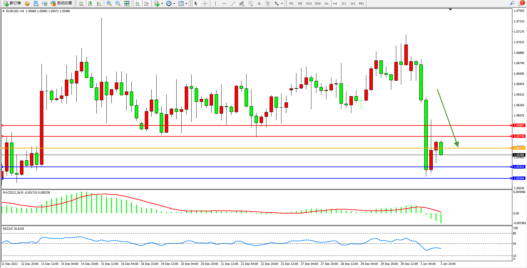 交易策略:1.05577下方看跌,目标1.05322、1.05164