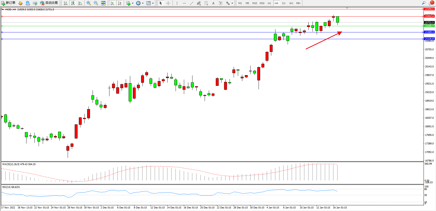 香港恒生指数1月16日(周一)收盘上涨8.06点,涨幅0.04%,报21746.72点;港股三大指数午后快速回落转跌,恒生科技指数一度跌超2%,最终下跌1.06%,恒指尾盘拉升微幅上涨0.04%,国指仍收跌0.55%。大型科技股普遍下跌,美团、快手跌超3%,京东、网易、小米、腾讯均下跌;南下资金净流入16.4亿港元,大市成交额为1407亿港元。文旅部:自2023年2月16日起,各地文化和旅游行政部门恢复对涉港澳台营业性演出的受理和审批。暂缓新批涉外营业性演出活动(演职人员已在境内的除外)。