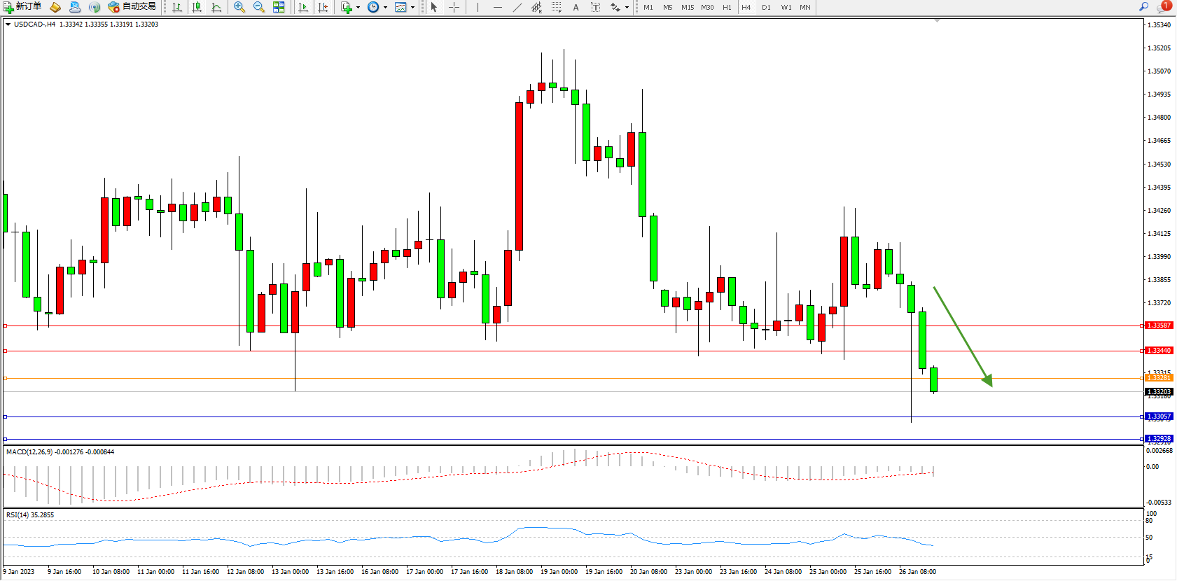 交易策略:1.33281下方看跌,目标1.33057、1.32928