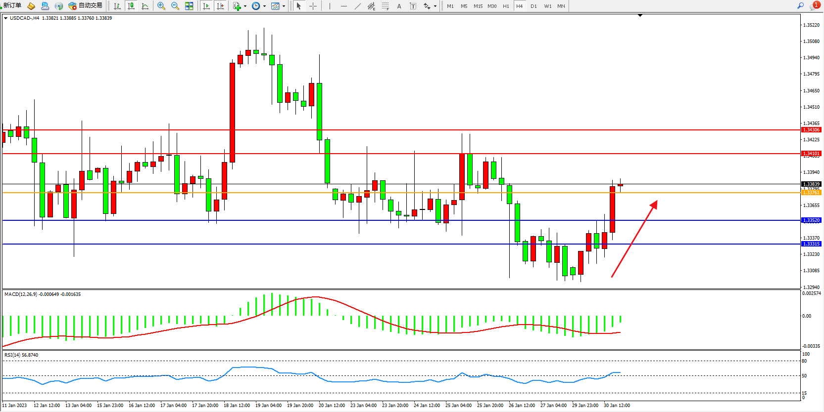 交易策略:1.33761上方看涨,目标1.34101、1.34306