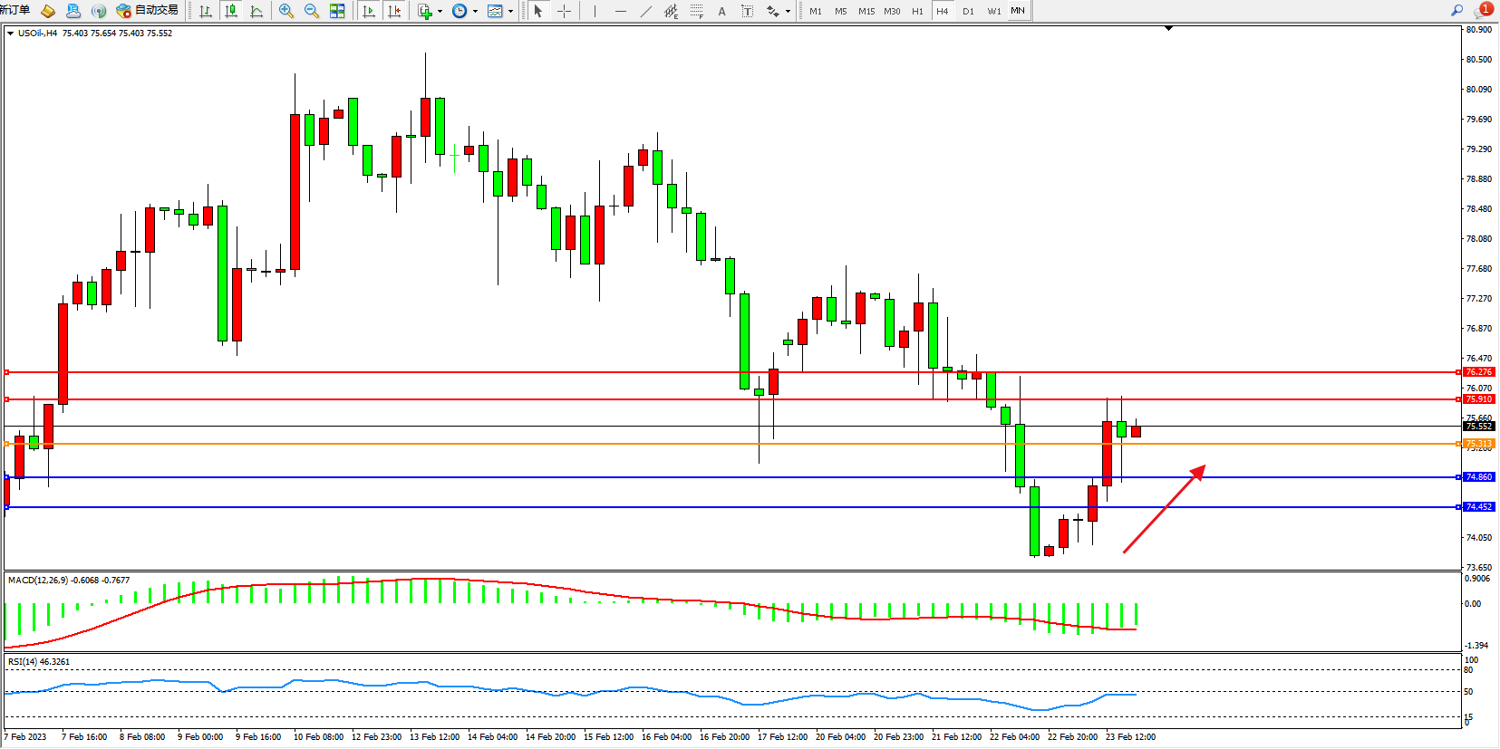 原油维持75.552附近震荡,美国至2月17日当周EIA俄克拉荷马州库欣原油库存 70万桶,前值65.9万桶。美国至2月17日当周除却战略储备的商业原油库存为2021年5月28日当周以来最高。