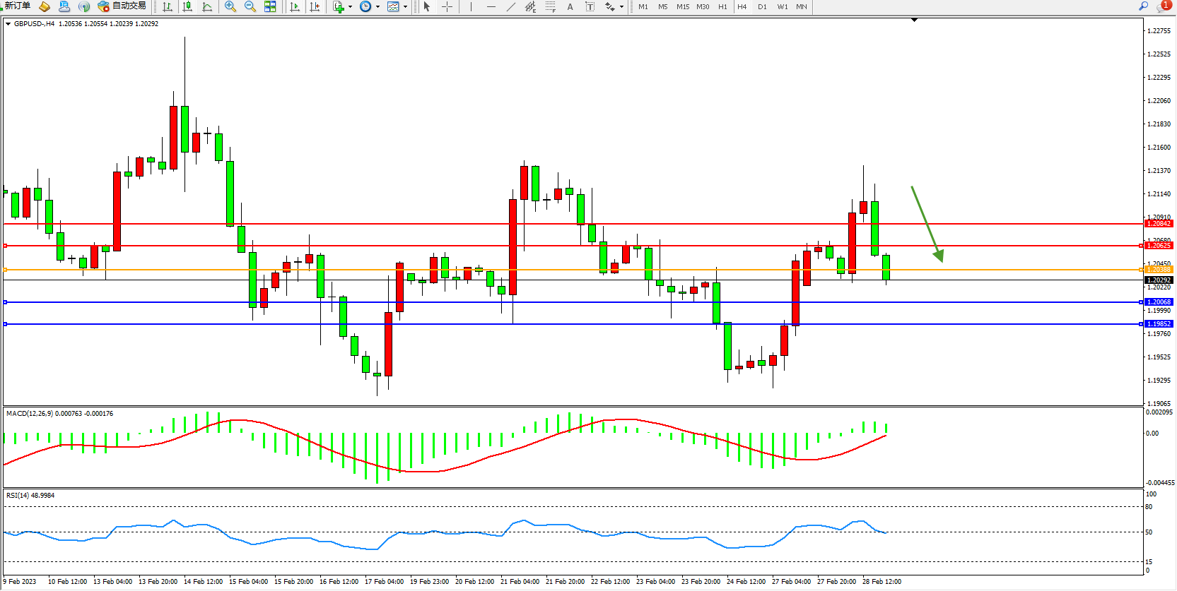 英镑美元GBPUSD ——4小时K线图显示: