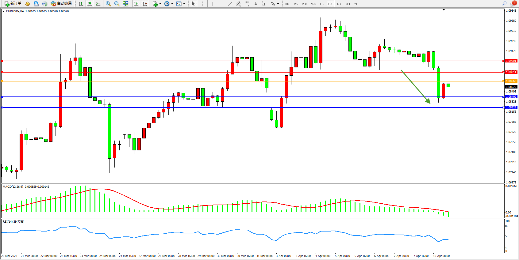 欧元兑美元维持1.08570附近震荡,欧央行给出市场鹰派的指引,称除非银行业动荡恶化,否则可能会在5月份的下一次会议上继续加息。因此仅从息差方面考虑,欧元暂时还不会受到太大的冲击。