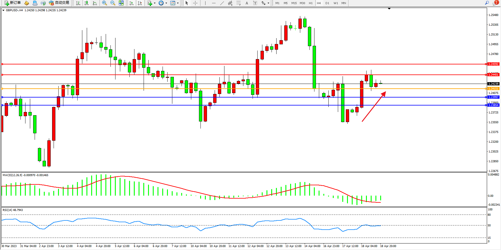 交易策略:1.24151上方看涨,目标1.24401  1.24592